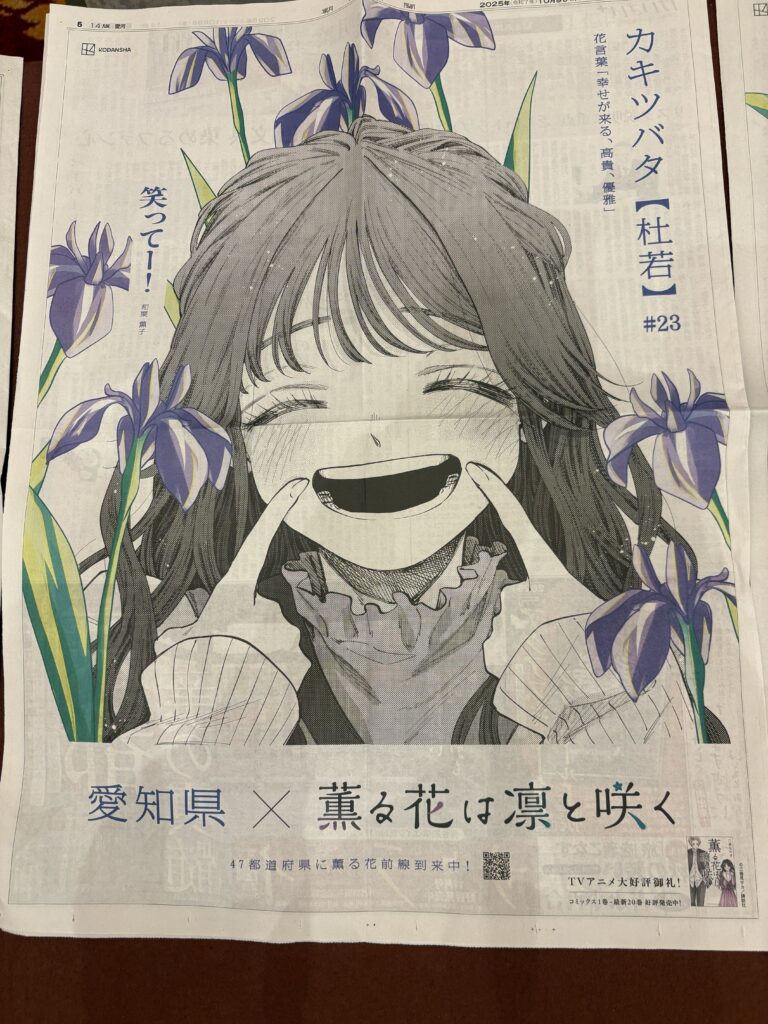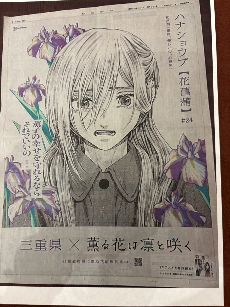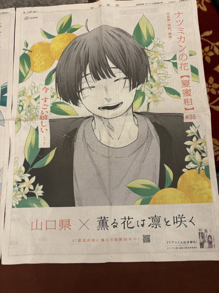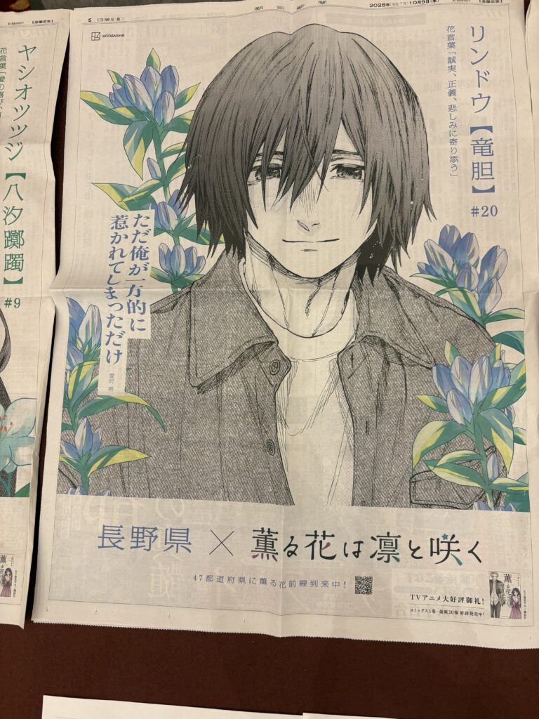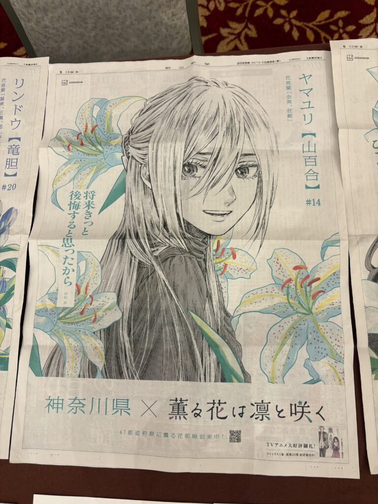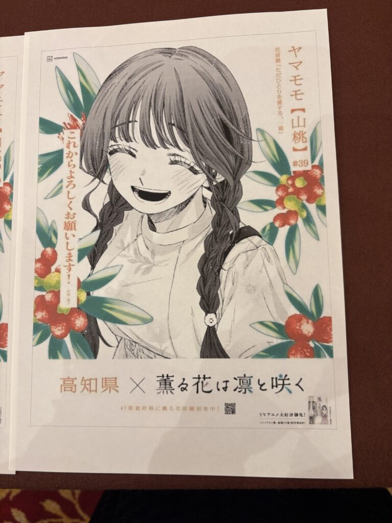 会場にお持ちいただいた「県の花」と漫画家「三香見サカ」の「薫る花は凛と咲く」とのコラボ企画のご紹介