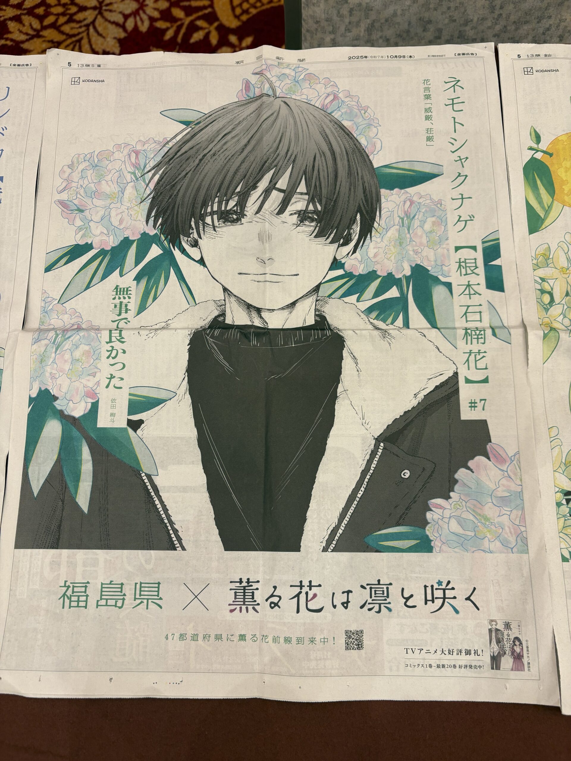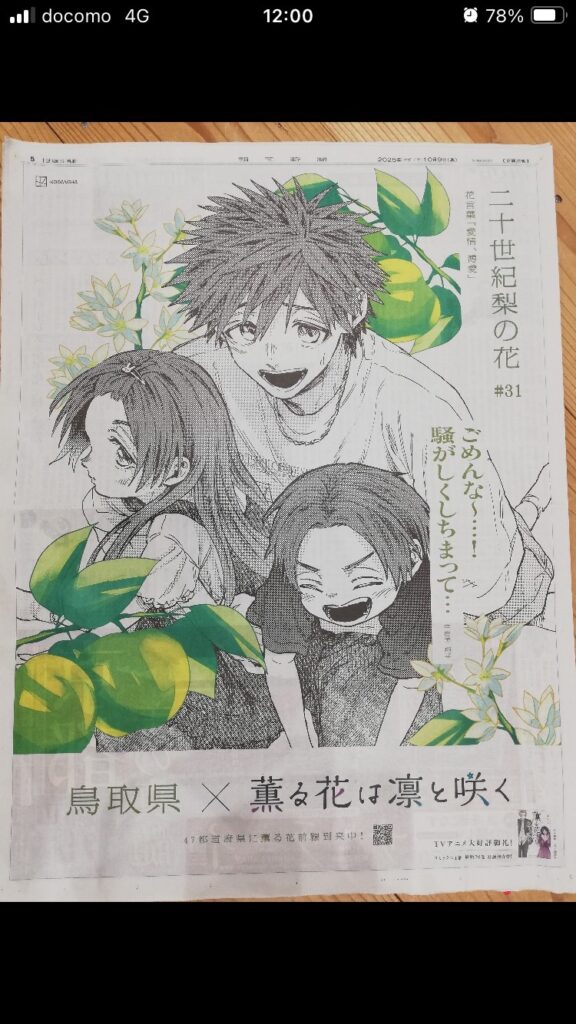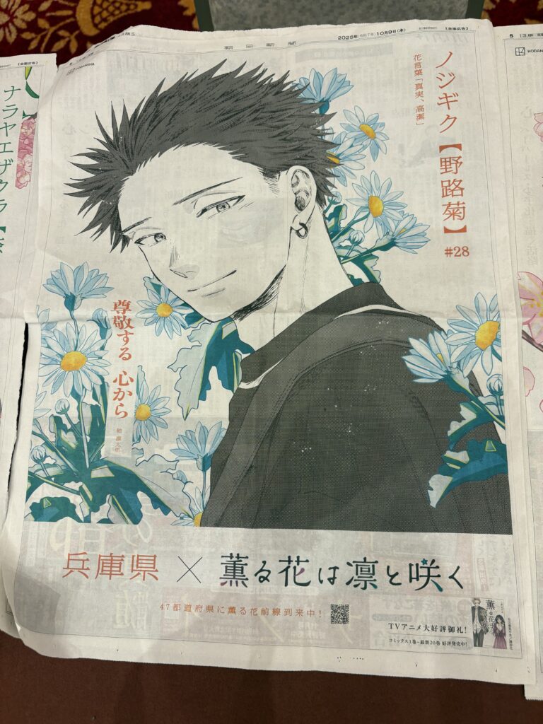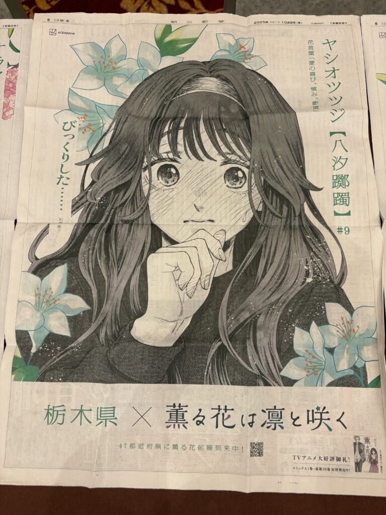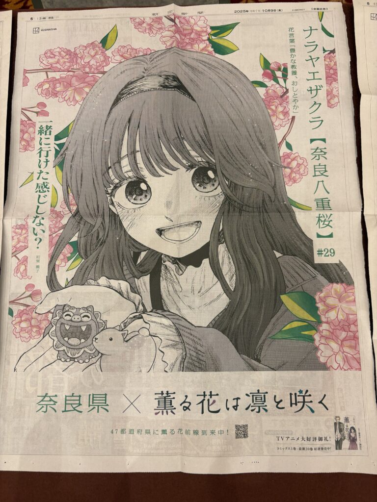 会場にお持ちいただいた「県の花」と漫画家「三香見サカ」の「薫る花は凛と咲く」とのコラボ企画のご紹介